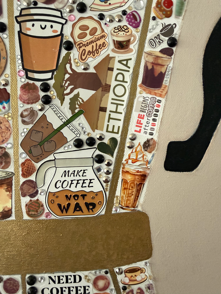 המשטח מתמלא סטיקרים מעולם הקפה וכל המתוק שמתלווה אליו: